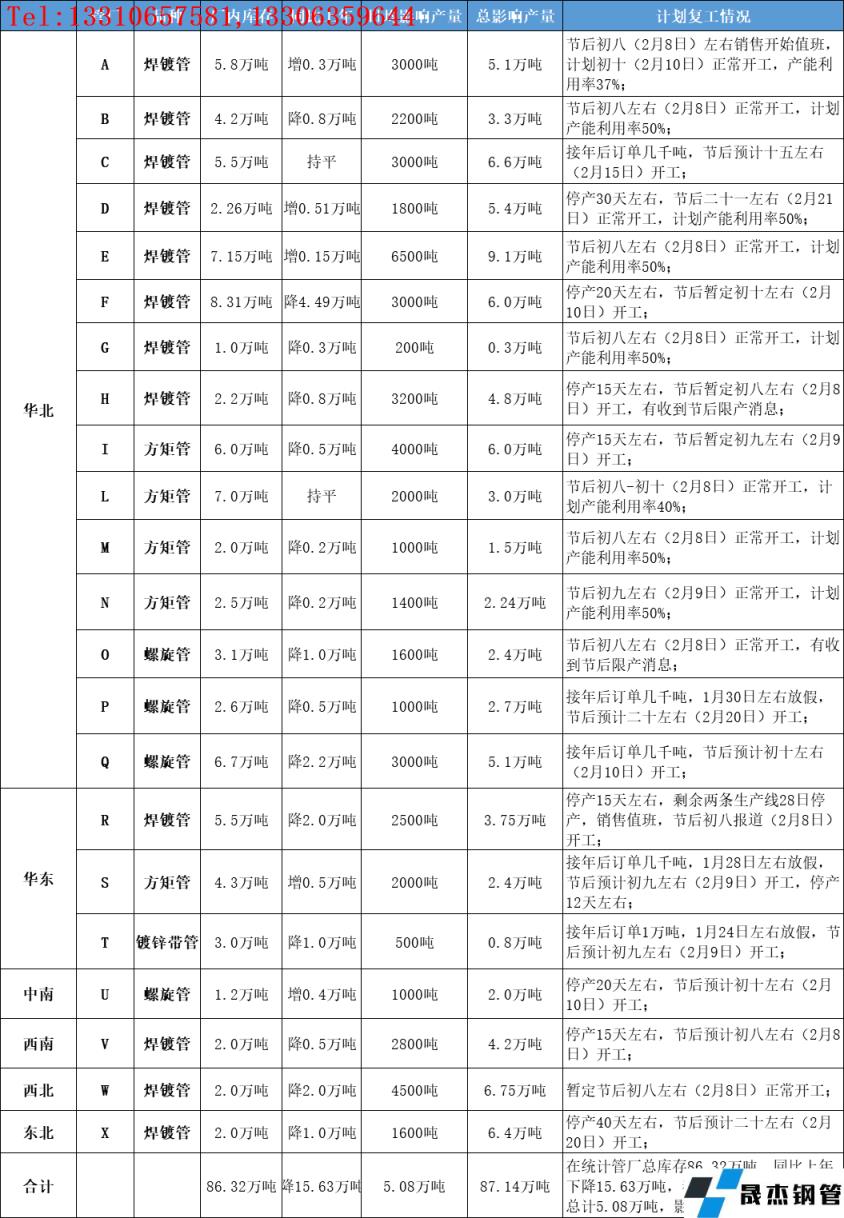 引言:1月上旬焊接厚壁無縫鋼管廠前期利潤尚可,產能利用率一度回升至70%左右,中下旬隨冬儲操作陸續收尾,管廠隨之步入停產、放假階段。網對全國焊接厚壁無縫鋼管廠庫存、產量及春節后復工情況進行調研。