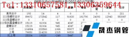 節(jié)后第二周北京現(xiàn)貨市場成交恢復緩慢,繼續(xù)呈現(xiàn)持續(xù)累庫進程,在無縫厚壁無縫鋼管廠家到貨有所變化的情況下,增庫速度有明顯減慢。具體如下:
