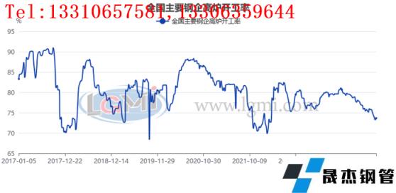圖4全國(guó)主要厚壁無(wú)縫鋼管企業(yè)高爐開(kāi)工率