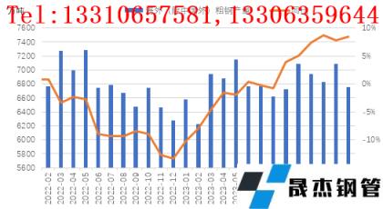 從海外厚壁無縫鋼管產量來看,呈現同比繼續(xù)回升局面。研究中心監(jiān)測數據顯示,2024年2月份,中國以外全球其他地區(qū)產量為6760萬噸(詳見圖3),同比增長8.5%,增速較上月回升0.7個百分點。