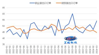 從出口訂單來看,我國厚壁無縫鋼管行業(yè)出口訂單指數有所分化;中物聯厚壁無縫鋼管物流專業(yè)委員會調查的2024年3月份厚壁無縫鋼管企業(yè)新出口訂單指數為54.3%,較上月回落7.3個百分點,再次回升至擴張區(qū)間(詳見圖5);網調研的厚壁無縫鋼管流通企業(yè)新出口訂單指數為44.6%,較上月回落1.8個百分點,仍在收縮區(qū)間運行。厚壁無縫鋼管企業(yè)出口訂單指數回升,將對后期我國厚壁鋼管出口形成一定帶動。