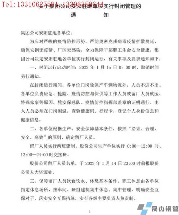 1月14日安鋼內(nèi)部發(fā)布了封廠通知,要求從1月15日零時(shí)起禁止員工出入廠區(qū),但仍維持兩班生產(chǎn)。