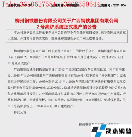 免責聲明:本網站(山東聊城晟杰無縫鋼管廠m.82912.cn)刊載的“重磅!12月10大鋼鐵項目投產、復產!”等均源于網絡,版權歸原作者所有,且僅代表原作者觀點,本文所載信息僅供參考。轉載僅為學習與交流之目的,如無意中侵犯您的合法權益,請及時聯系刪除。本網站刊登此篇文章并不意味著本站贊同其觀點或證實其內容的真實性,我們不對其科學性、嚴肅性等作任何形式的保證。如果侵犯了您的版權,請盡快聯系我們予以撤銷,謝謝合作!