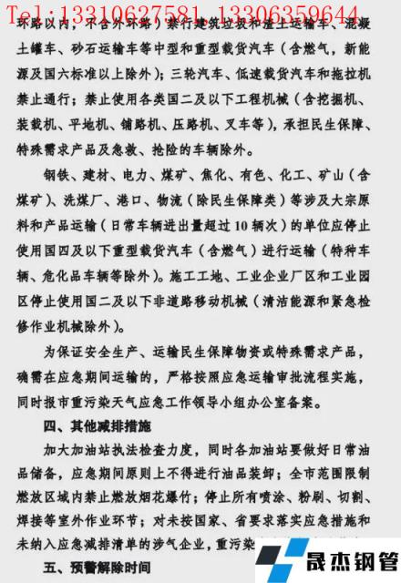 1.鋼鐵企業(yè)。嚴(yán)格按照《重污染天氣應(yīng)急減排清單》中“橙色預(yù)警減排措施”執(zhí)行。
