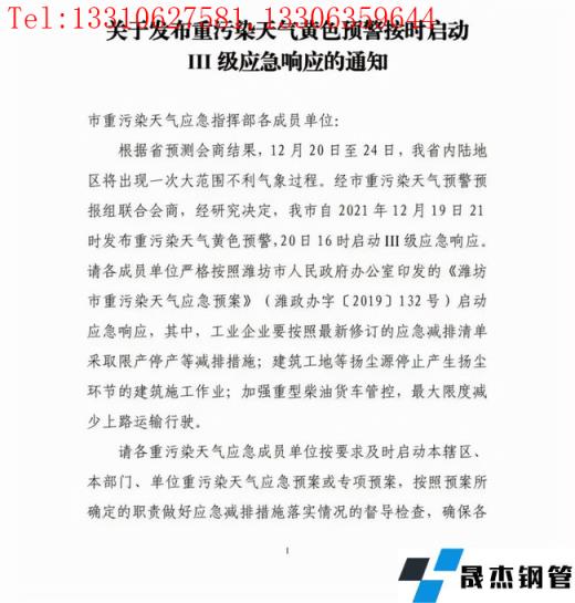 根據(jù)氣象預(yù)測(cè),自12月19日起,唐山市受弱氣壓場(chǎng)控制,風(fēng)力小、濕度大,擴(kuò)散條件差,將出現(xiàn)中至重度污染過程,達(dá)到橙色預(yù)警級(jí)別。為有效應(yīng)對(duì)此輪污染過程,最大限度減輕污染程度,按照省大氣辦《關(guān)于加強(qiáng)管控積極應(yīng)對(duì)本輪污染過程的提醒函》(冀氣領(lǐng)辦〔2021〕119號(hào))要求,市重污染天氣應(yīng)對(duì)指揮部決定,自2021年12月19日12時(shí)全市啟動(dòng)重污染天氣Ⅱ級(jí)應(yīng)急響應(yīng),具體解除時(shí)間另行通知。鋼鐵相關(guān)信息如下: