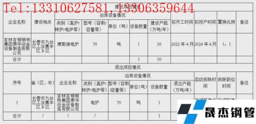 吉林吉鋼鋼鐵集團(tuán)泰華冶金設(shè)備制造有限公司擬于2022年4月在長(zhǎng)春市九臺(tái)區(qū)工業(yè)集中區(qū)B區(qū)新建70t康斯迪電爐1座,產(chǎn)能50萬噸/年,項(xiàng)目預(yù)計(jì)2024年4月投產(chǎn)。同時(shí)計(jì)劃退出70t電爐1座,產(chǎn)能50萬噸/年,預(yù)計(jì)在新項(xiàng)目投產(chǎn)前拆除。