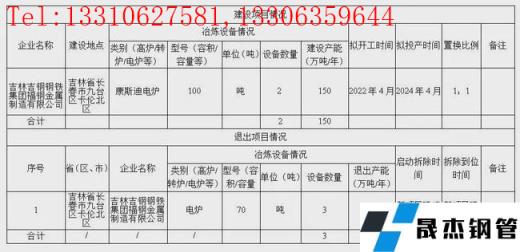 秦皇島佰工鋼鐵有限公司擬于2021年12月15日新建100t轉(zhuǎn)爐1座,產(chǎn)能115萬噸/年;50t合金鋼電爐1座,產(chǎn)能36萬噸/年;100tLF精煉爐1座;LF精煉爐真空精煉爐1座;60tLF精煉爐1座;60t真空精煉爐1座。共計(jì)新建煉鋼產(chǎn)能151萬噸,所有項(xiàng)目擬于2022年12月15日投產(chǎn)。