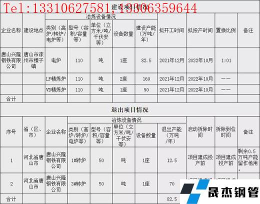 唐山興隆鋼鐵有限公司煉鋼產能等量置換轉型升級項目產能置換方案