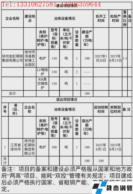 徐州金虹鋼鐵集團有限公司電爐改造項目產能置換方案