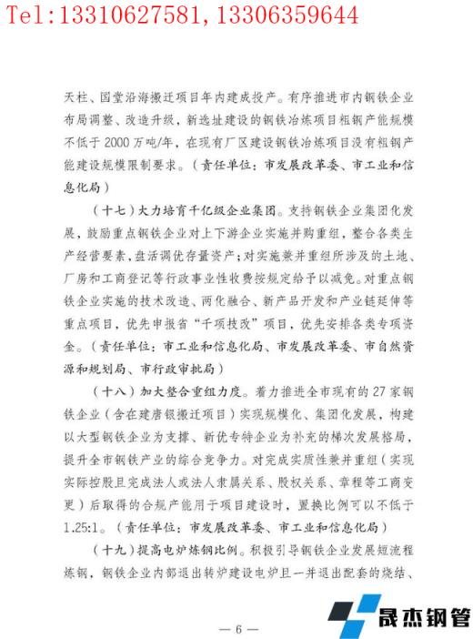 著力推進全市現有的27家鋼鐵企業(含在建唐銀搬遷項目)實現規模化、集團化發展,構建以大型鋼鐵企業為支撐、新優專特企業為補充的梯次發展格局,提升全市鋼鐵產業的綜合競爭力。對完成實質性兼并重組(實現實際控股且完成法人或法人隸屬關系、股權關系、章程等工商變更)后取得的合規產能用于項目建設時,置換比例可以不低于1.25:1。