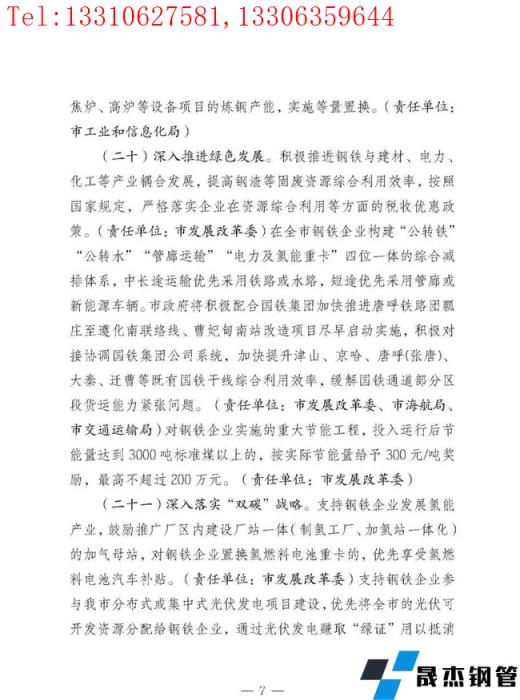 積極推進鋼鐵與建材、電力、化工等產業耦合發展,提高鋼渣等固廢資源綜合利用效率,按照國家規定,嚴格落實企業在資源綜合利用等方面的稅收優惠政策。在全市鋼鐵企業構建"公轉鐵""公轉水""管廊運輸""電力及氫能重卡"四位一體的綜合減排體系,中長途運輸優先采用鐵路或水路,短途優先采用管廊或新能源車輛。對鋼鐵企業實施的重大節能工程,投入運行后節能量達到3000噸標準煤以上的,按實際節能量給予300元/噸獎勵,最高不超過200萬元。