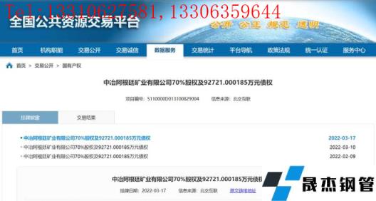 免責聲明:本網站(山東聊城晟杰無縫鋼管廠m.82912.cn)刊載的“6.4億!中冶股份轉讓一鐵礦70%股權及9.27億債權!”等均源于網絡,版權歸原作者所有,且僅代表原作者觀點,本文所載信息僅供參考。轉載僅為學習與交流之目的,如無意中侵犯您的合法權益,請及時聯系刪除。本網站刊登此篇文章并不意味著本站贊同其觀點或證實其內容的真實性,我們不對其科學性、嚴肅性等作任何形式的保證。如果侵犯了您的版權,請盡快聯系我們予以撤銷,謝謝合作!
