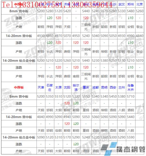全國23個主要市場14-20mm 普中板平均價格5031元/噸,較上個交易日上調1元/噸。
