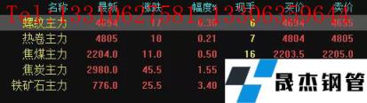 今日螺紋主力期貨漲17,收報4694,漲幅0.36%;熱卷主力漲10,收報4805,漲幅0.21%;焦煤主力漲11,收報2204,漲幅0.5%;焦炭主力漲45.5,收報2980,漲幅1.55%;鐵礦石主力漲25.5收報776,漲幅3.4%。