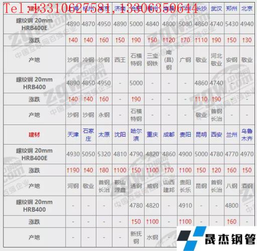 免責聲明:本網站(山東聊城晟杰無縫鋼管廠m.82912.cn)刊載的“2月8日全國鋼材_無縫鋼管實時價格!”等均源于網絡,版權歸原作者所有,且僅代表原作者觀點,本文所載信息僅供參考。轉載僅為學習與交流之目的,如無意中侵犯您的合法權益,請及時聯系刪除。本網站刊登此篇文章并不意味著本站贊同其觀點或證實其內容的真實性,我們不對其科學性、嚴肅性等作任何形式的保證。如果侵犯了您的版權,請盡快聯系我們予以撤銷,謝謝合作!