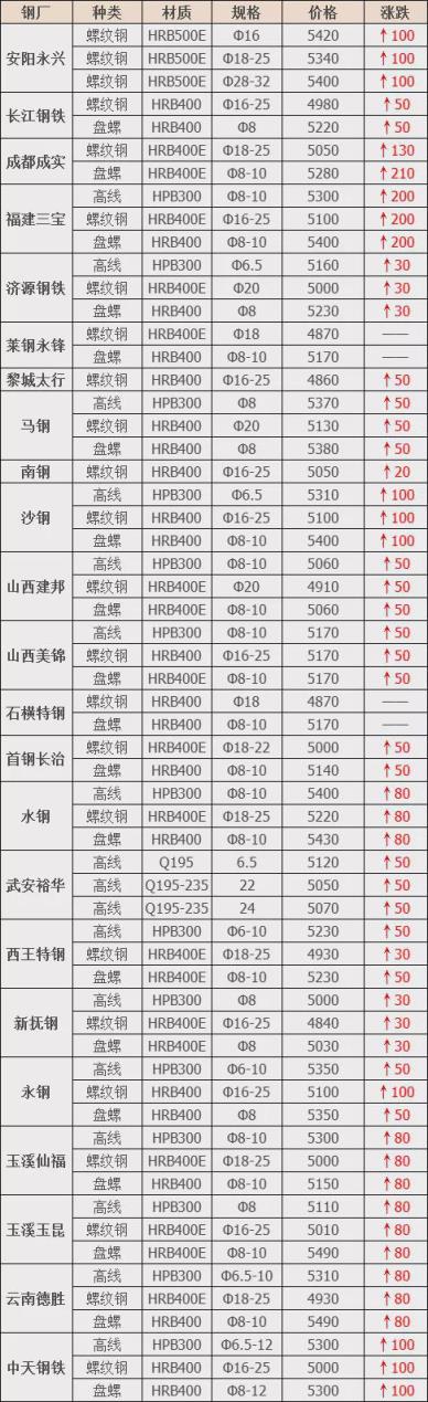 上調35家,占比85.5%,調價幅度10-210元/噸,