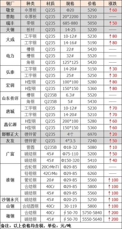2月11日廣西梧州永達漲30:冷熱板碎料3220工業純碎料3190鋼筋壓3250一級純壓3230二級壓塊3190三級壓塊3110剪料雜壓塊2910高碳鋼3300重型廢鋼3250一級剪料3220二級剪料3110三級剪料3050破碎料比重1.5的按2870,不含稅,單位:元/噸。