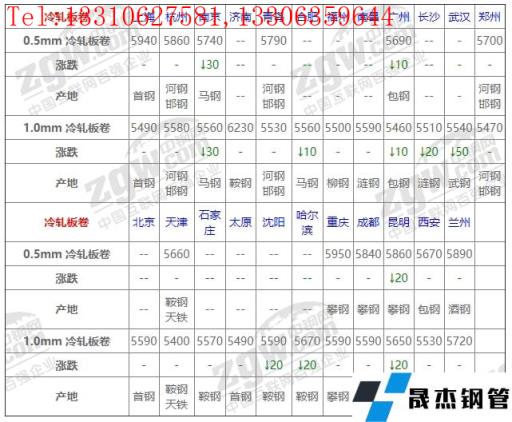 全國23個主要市場1.0mm 冷軋板卷平均價格5583元/噸,較上個交易日下調9元/噸。