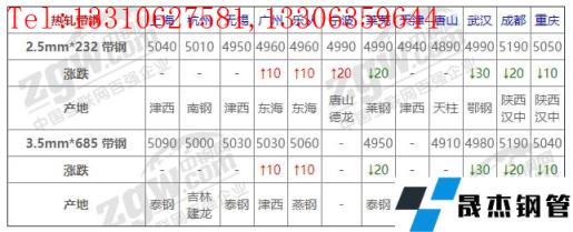 全國12個主要市場2.5mm*232 帶鋼平均價格4997元/噸,較上個交易日下調3元/噸。