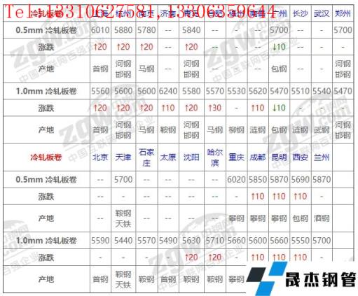 全國23個主要市場1.0mm 冷軋板卷平均價格5604元/噸,較上個交易日上調10元/噸。