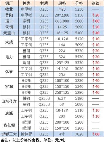 今日建材共10家無縫鋼管廠家調價發布,其中: