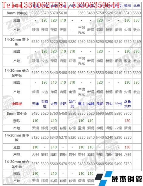 全國23個主要市場14-20mm 低合金中板平均價格5489元/噸,較上個交易日下調8元/噸。