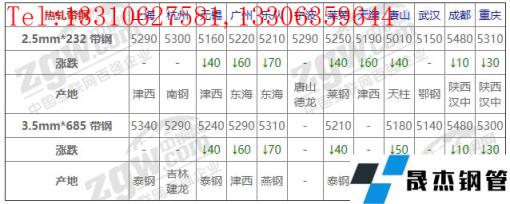 全國12個主要市場2.5mm*232 帶鋼平均價格5238元/噸,較上個交易日下調30元/噸。