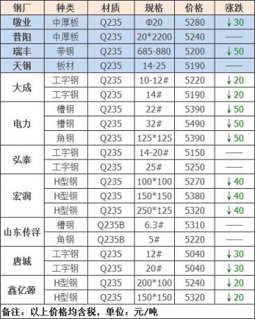 今日板、型材共11家無縫鋼管廠家調價發布,其中: