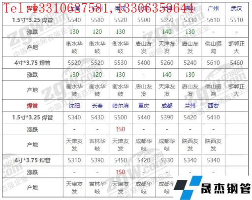 全國(guó)15個(gè)主要市場(chǎng)1.5寸*3.25 焊管平均價(jià)格5458元/噸,較上個(gè)交易日下調(diào)7元/噸。