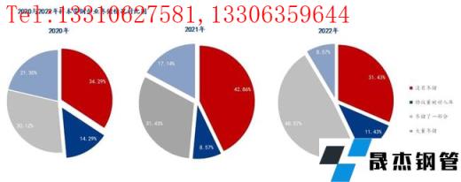 95家帶鋼樣本鋼貿企業進行電話調研。包括13家國企,38家大中型鋼貿企業,44家中小型鋼貿企業(因2022年與2021年、2020年調研樣本有所出入,三個調研結果不能做學術對比,僅作為冬儲趨勢做為參考)。95家樣本企業中,目前沒有冬儲的占31.43%,有固定協議量,被動存儲的占11.43%,存儲了一部分的占據48.57%。大量冬儲的占8.57%。其中尚未冬儲的鋼貿企業中,不大降,不入手的企業占22.86%,因1月無縫鋼管廠家陸續復產加之無縫鋼管廠家原料春節提前備貨,因此鐵礦石及焦炭價格上調,鋼材成本持續增加,加之市場正套入場以及“冬奧會”限產消息加持下,市場并無大降空間。而小幅回調之后即入手的商家占比22.86%,基本在價格下降后第一次反彈是補充了少量庫存。年后再入手的占45.71%。具體如下: