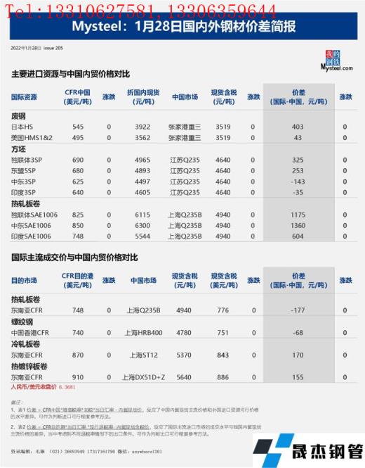 免責(zé)聲明:本網(wǎng)站(山東聊城晟杰無(wú)縫鋼管廠m.82912.cn)刊載的“2022年01月28日日?qǐng)?bào):國(guó)內(nèi)外鋼材_無(wú)縫鋼管價(jià)差匯總(2022.1.28)”等均源于網(wǎng)絡(luò),版權(quán)歸原作者所有,且僅代表原作者觀點(diǎn),本文所載信息僅供參考。轉(zhuǎn)載僅為學(xué)習(xí)與交流之目的,如無(wú)意中侵犯您的合法權(quán)益,請(qǐng)及時(shí)聯(lián)系刪除。本網(wǎng)站刊登此篇文章并不意味著本站贊同其觀點(diǎn)或證實(shí)其內(nèi)容的真實(shí)性,我們不對(duì)其科學(xué)性、嚴(yán)肅性等作任何形式的保證。如果侵犯了您的版權(quán),請(qǐng)盡快聯(lián)系我們予以撤銷,謝謝合作!