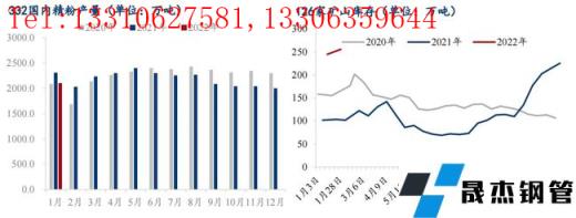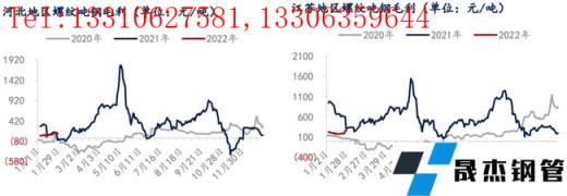 無縫厚壁鋼管廠家利潤方面,截至1月28日,調研江蘇螺紋噸鋼毛利在260元/噸附近,河北螺紋噸鋼毛利在100元/噸附近,月內噸鋼毛利呈現先降后升趨勢,截至當前兩地區螺紋噸鋼毛利略高于上月同期水平。隨著春節假期的臨近,下游需求減弱,原料端鐵礦石港口庫存開始降庫,無縫厚壁鋼管廠家節前補庫規模不斷擴大,導致原料成本上升較為明顯,上半月無縫厚壁鋼管廠家噸鋼毛利出現回落;但下半月經濟數據發布、成材冬儲略超預期,成材生產商看好節后需求,價格堅挺,噸鋼毛利回升明顯。
