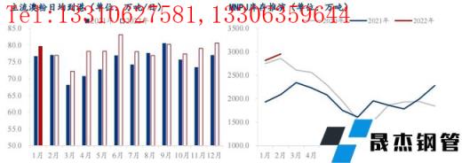 鐵礦石疏港:在無縫厚壁鋼管廠家復產和節前補庫的支撐下,無縫厚壁鋼管廠家積極往廠內提貨,1月疏港大幅增加。截至1月28日,預計統計中國45港1月疏港量9940萬噸,日均疏港環比增加33.8萬噸/天至320.6萬噸/天,增幅11.2%。本月疏港增量主要集中在華北和華東地區,從1月28日的最新數據來看,華北地區日均疏港已經較上月底增加18萬噸/天,華東地區較上月底增加6萬噸/天。下月來看,一方面春節期間無縫厚壁鋼管廠家提貨下降,另一方面限產加嚴后抑制部分疏港,整體疏港將會出現明顯減量。