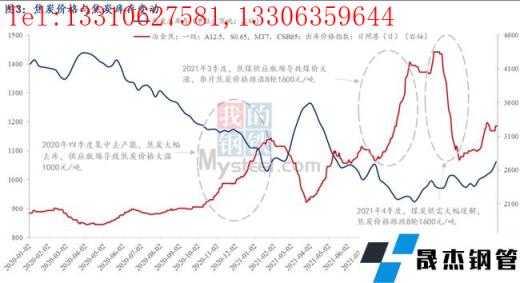 2)而2021年雖沒有再出現2020年4季度集中大幅去產能的情況。但仍出現了2021年三季度焦炭價格大漲1600元/噸的情形,兩個半月漲幅48%,漲幅明顯高于2020年四季度。這主要是由于焦煤供應受限導致的煤價大漲推升焦炭成本大幅上漲,以呂梁低硫主焦煤來看,其價格從6月底至9月底漲了一倍(2050-4100元/噸),焦炭供應矛盾從產能約束轉移至原料供應受限。同樣的,2021年四季度后,國家出臺煤炭保供政策,原料供應大幅緩解,同時需求端鐵水產量大減,最終傳導至焦煤價格大跌,焦炭價格應聲回落1600元/噸。