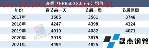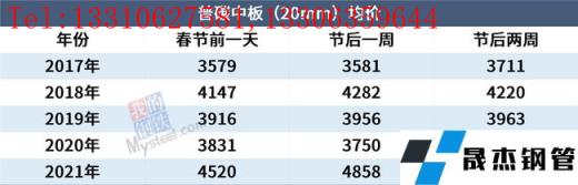 小編匯總近5年春節后兩周全國主要城市13大品種厚壁無縫鋼管均價走勢,以供參考。
