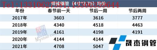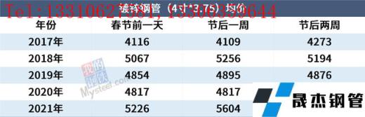 免責聲明:本網站(山東聊城晟杰無縫鋼管廠m.82912.cn)刊載的“近5年春節前后鋼材_無縫鋼管市場走勢”等均源于網絡,版權歸原作者所有,且僅代表原作者觀點,本文所載信息僅供參考。轉載僅為學習與交流之目的,如無意中侵犯您的合法權益,請及時聯系刪除。本網站刊登此篇文章并不意味著本站贊同其觀點或證實其內容的真實性,我們不對其科學性、嚴肅性等作任何形式的保證。如果侵犯了您的版權,請盡快聯系我們予以撤銷,謝謝合作!
