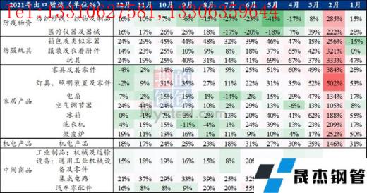 分階段來看,2021年3月-7月,全球疫情出現(xiàn)階段性緩解,防疫物資出口增速明顯下滑,在歐美國家持續(xù)量化寬松下,箱包、服裝、玩具、家居產(chǎn)品等消費品出口維持較高增速。同時,伴隨海外復工復產(chǎn),機電產(chǎn)品、零配件等中間品較快復蘇;2021年8月-12月,受疫情反復影響,防疫物資出口逐步恢復增長,家居相關消費品出現(xiàn)明顯下滑,紡服玩具類消費品、以及部分中間品(集成電路與工程機械)維持強勁出口。