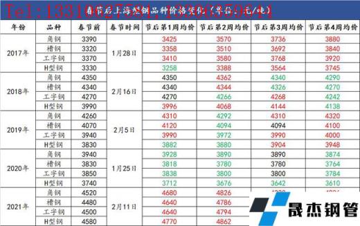 附:近五年上海型材春節均價走勢: