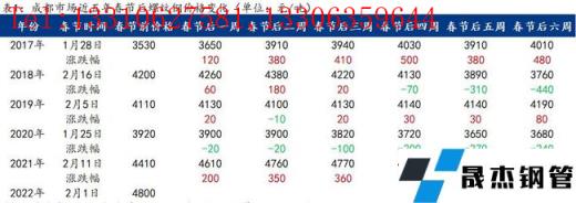 筆者回顧了近5年西南區域各主要建筑厚壁無縫鋼管市場價格,通過對節后六周價格變化的對比得出,除2020年春節后受公共衛生事件影響,其余時間節后前兩周基本以“開門紅”的上漲行情為主。
