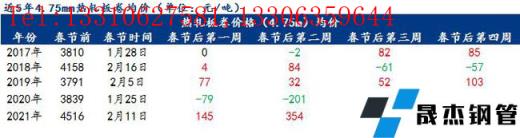 免責聲明:本網站(山東聊城晟杰無縫鋼管廠m.82912.cn)刊載的“近5年春節前后全國熱軋板卷市場走勢”等均源于網絡,版權歸原作者所有,且僅代表原作者觀點,本文所載信息僅供參考。轉載僅為學習與交流之目的,如無意中侵犯您的合法權益,請及時聯系刪除。本網站刊登此篇文章并不意味著本站贊同其觀點或證實其內容的真實性,我們不對其科學性、嚴肅性等作任何形式的保證。如果侵犯了您的版權,請盡快聯系我們予以撤銷,謝謝合作!