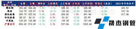 供應(yīng)方面,本周五大厚壁無(wú)縫鋼管品種供應(yīng)維持低位水平,降至894.45萬(wàn)噸,降幅2.1%,其中建材環(huán)比減量2.3萬(wàn)噸,降幅0.6%,板材環(huán)比減量16.78萬(wàn)噸,降幅3.2%。