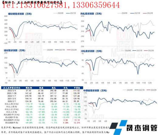 分品種來(lái)看,長(zhǎng)板雙降,但板材降幅更加突出。從農(nóng)歷同比來(lái)看,長(zhǎng)材和板材分別同比低7.2%和11.8%。可見(jiàn),板材在冬奧會(huì)限產(chǎn)和冬季采暖季限產(chǎn)期間影響較建材偏高。另外,由于建材品種受季節(jié)性影響較大,在節(jié)前已有大比例的減產(chǎn),且集中于電爐和調(diào)坯企業(yè),但節(jié)中部分長(zhǎng)流程企業(yè)保持正常生產(chǎn)狀態(tài),因此建材整體變化不大。而板材品種季節(jié)性表現(xiàn)并不突出,因此供應(yīng)減量主因基本在于例檢和限產(chǎn)。綜合來(lái)看,因部分企業(yè)節(jié)后執(zhí)行減限產(chǎn)計(jì)劃,后期仍有減量預(yù)期,但空間有限。