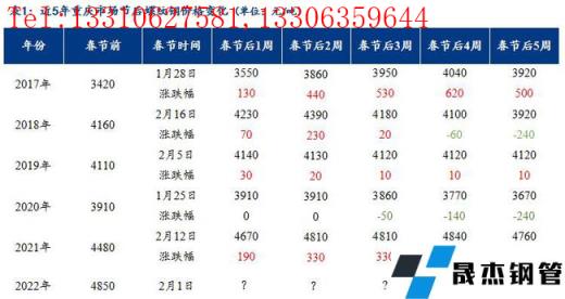 免責聲明:本網站(山東聊城晟杰無縫鋼管廠m.82912.cn)刊載的“近5年春節前后重慶螺紋鋼市場走勢”等均源于網絡,版權歸原作者所有,且僅代表原作者觀點,本文所載信息僅供參考。轉載僅為學習與交流之目的,如無意中侵犯您的合法權益,請及時聯系刪除。本網站刊登此篇文章并不意味著本站贊同其觀點或證實其內容的真實性,我們不對其科學性、嚴肅性等作任何形式的保證。如果侵犯了您的版權,請盡快聯系我們予以撤銷,謝謝合作!