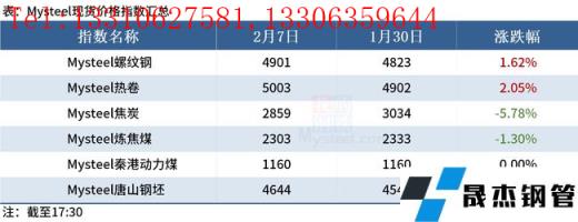 免責聲明:本網站(山東聊城晟杰無縫鋼管廠m.82912.cn)刊載的“2022年02月07日晚餐:唐山鋼坯上調100,鋼材_無縫鋼管總庫存增超30%”等均源于網絡,版權歸原作者所有,且僅代表原作者觀點,本文所載信息僅供參考。轉載僅為學習與交流之目的,如無意中侵犯您的合法權益,請及時聯系刪除。本網站刊登此篇文章并不意味著本站贊同其觀點或證實其內容的真實性,我們不對其科學性、嚴肅性等作任何形式的保證。如果侵犯了您的版權,請盡快聯系我們予以撤銷,謝謝合作!