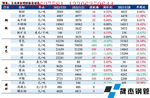 免責聲明:本網站(山東聊城晟杰無縫鋼管廠m.82912.cn)刊載的“大宗原材料價格周報(1.24-1.28)”等均源于網絡,版權歸原作者所有,且僅代表原作者觀點,本文所載信息僅供參考。轉載僅為學習與交流之目的,如無意中侵犯您的合法權益,請及時聯系刪除。本網站刊登此篇文章并不意味著本站贊同其觀點或證實其內容的真實性,我們不對其科學性、嚴肅性等作任何形式的保證。如果侵犯了您的版權,請盡快聯系我們予以撤銷,謝謝合作!