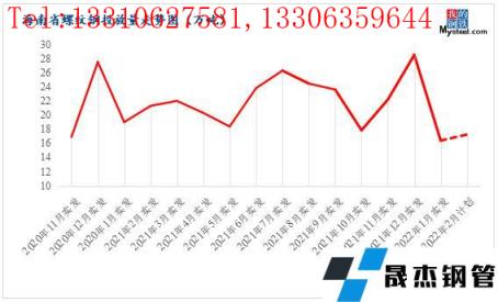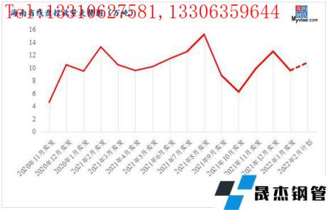 回顧1月份,海南建筑厚壁無縫鋼管價格呈現震蕩上行的態勢,現貨價格拉漲180元/噸,下旬隨著需求停滯,價格定格在5040元/噸。春節后在期貨和無縫厚壁鋼管廠家推漲下,本地厚壁無縫鋼管價格喜迎開門紅,市場價格拉漲210元/噸;由于春節假期期間,碼頭也是出于放假狀態,資源入庫有限,目前海南建筑厚壁無縫鋼管庫存在24.41萬噸,相比節前增加1.61萬噸。那么商家2月份發貨積極性如何?對海南省建筑厚壁無縫鋼管1月份實際到貨量和2月計劃發貨量統計如下。
