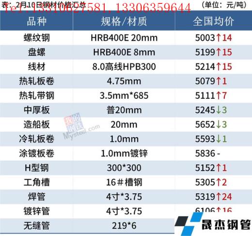 建筑厚壁無縫鋼管:2月10日,全國31個(gè)主要城市20mm三級(jí)抗震螺紋鋼均價(jià)5003元/噸,較上個(gè)交易日上漲14元/噸。本周建材產(chǎn)量受春節(jié)影響小幅回落;廠庫、社庫大幅增加,表觀消費(fèi)小幅上升。短期來看,目前市場(chǎng)實(shí)際需求并未啟動(dòng),現(xiàn)貨價(jià)格多受情緒面驅(qū)動(dòng)上漲,支撐力有限。因此預(yù)計(jì)短期現(xiàn)貨市場(chǎng)在情緒面驅(qū)動(dòng)下價(jià)格仍有拉高的可能。
