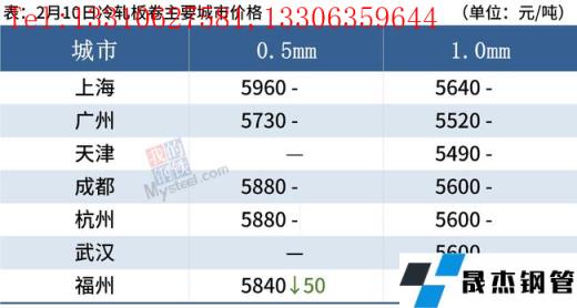 冷軋板卷:2月10日,全國24個(gè)主要城市1.0mm冷卷均價(jià)5593元/噸,較上個(gè)交易日下跌1元/噸。今日黑色系期貨盤面整體呈低開高走的態(tài)勢(shì),在期貨盤面的影響下,午后市場(chǎng)詢單人數(shù)明顯增加,但由于下游客戶觀望情緒較為濃厚,今日整體成交一般。庫存方面,據(jù)不完全統(tǒng)計(jì),現(xiàn)冷軋無縫厚壁鋼管廠家?guī)齑?3.71萬噸,周環(huán)比增加0.5萬噸,社會(huì)庫存139.17萬噸,周環(huán)比增加5.47萬噸,周消費(fèi)量67.89萬噸,環(huán)比減少1.26萬噸。綜合來看,故預(yù)計(jì)11日國內(nèi)冷軋板卷價(jià)格或?qū)⒄鹗庍\(yùn)行。