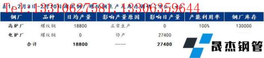 2、湖北省建材無縫厚壁鋼管廠家螺紋鋼日產量1.88萬噸,周環比增加0.16噸。檢修/限產影響建材日產量為2.74萬噸,產能利用率41%,周環比增加4%。