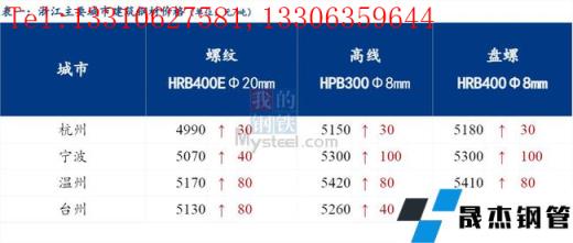 從浙江省今日價(jià)格來(lái)看,省內(nèi)價(jià)格有所上漲。其中杭州市場(chǎng)建筑厚壁無(wú)縫鋼管價(jià)格較昨日上漲30元/噸;寧波市場(chǎng)建筑厚壁無(wú)縫鋼管價(jià)格較昨日上漲40-100元/噸;溫州市場(chǎng)建筑厚壁無(wú)縫鋼管價(jià)格統(tǒng)漲80元/噸;臺(tái)州市場(chǎng)建筑厚壁無(wú)縫鋼管價(jià)格較昨日上漲40-110元/噸 。